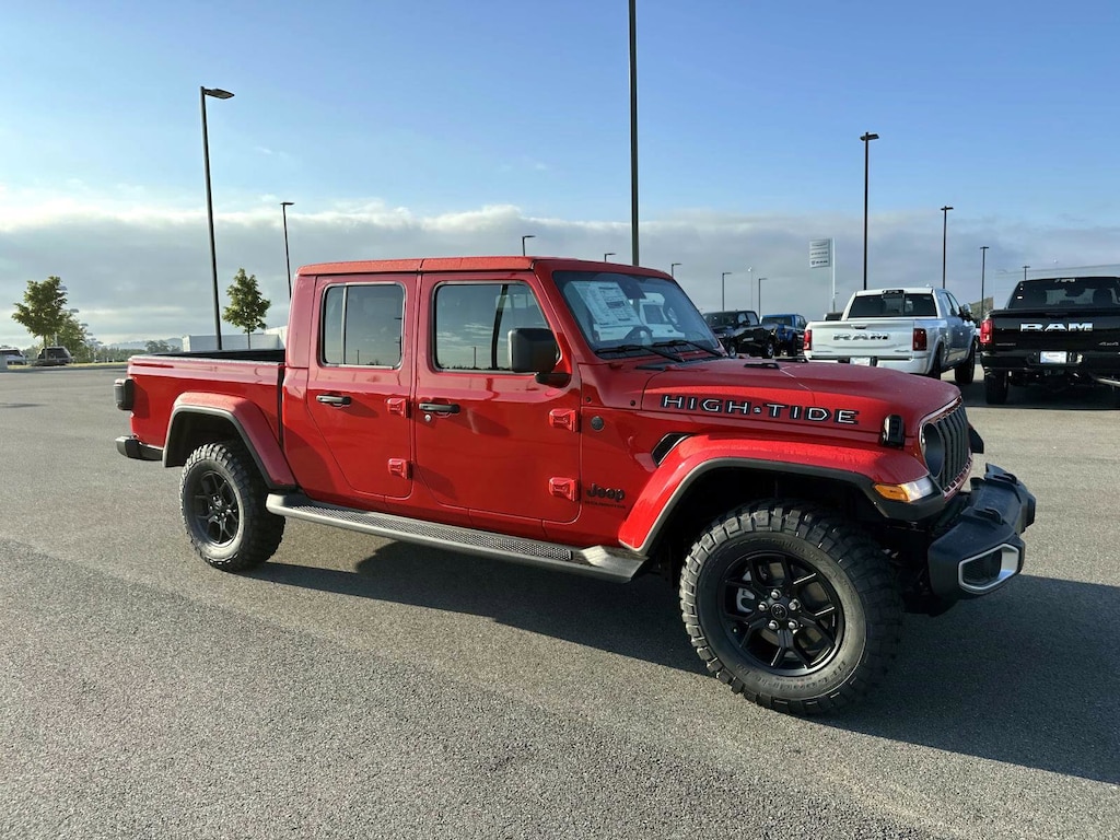 110 MPH Vehicle Max Speed Calibration, 12.3" Touchscreen Display, 3.73 Rear Axle Ratio, 4-Wheel Disc Brakes, 4G LTE Wi-Fi Hot Spot, 8 Speakers, 97 MPH Vehicle Max Speed Calibration, ABS brakes, Advanced Brake Assist, Air Conditioning, Alexa Built-In, AM/FM radio: SiriusXM, Apple CarPlay, Apple CarPlay/Android Auto, Auto High Beam Headlamp Control, Automatic Headlamps, Blind Spot & Cross Path Detection, Body Color 3-Piece Hard Top, Body Color Fender Flares (2-Piece), Brake assist, Cloth Low-Back Bucket Seats, Compass, Connectivity - US/Canada, Convenience Group, Corning Gorilla Glass, Daytime Running Lamp System, Deep Tint Sunscreen Windows, Delay-off headlights, Driver door bin, Driver vanity mirror, Dual front impact airbags, Dual front side impact airbags, Electronic Stability Control, Emergency/Assistance Call, Freedom Panel Storage Bag, Front anti-roll bar, Front Bucket Seats, Front Center Armrest w/Storage, Front Door Locks 2-Door Passive Entry, Front fog lights, Front reading lights, Full Length Floor Console Premium Armrest, Full Speed Forward Collision Warning Plus, Google Android Auto, Hard Seat Back, Heated Front Seats, Heated Steering Wheel, High Tide, High Tide Tailgate & Hood Decals, Illuminated entry, Integrated Radar Camera Module (IRCM), Integrated roll-over protection, Leather Wrapped Park Brake Handle, Leather Wrapped Shift Knob, LED Taillamps, Low tire pressure warning, MOPAR Spray In Bedliner, Normal Duty Suspension, Occupant sensing airbag, Outside temperature display, Overhead airbag, Panic alarm, ParkSense Rear Park Assist System, ParkView Rear Back-Up Camera, Passenger door bin, Passenger vanity mirror, Power 4-Way Driver Lumbar Adjust, Power 4-Way Passenger Lumbar Adjust, Power Adjust 8-Way Driver Seat, Power Adjust 8-Way Front Passenger Seat, Power Heated Mirrors, Power steering, Power windows, Premium Door Trim Panel, Premium McKinley Trimmed Seats, Premium Wrapped Steering Wheel, Quick Order Package 24Q High Tide, Radio data system, Radio: Uconnect 5 w/12.3" Display, Rear anti-roll bar, Rear Armrest w/Cupholder Seat, Rear reading lights, Rear Sliding Window, Rear Window Defroster, Remote keyless entry, Remote Start System, Safety Group, Security Alarm, Side Steps, Speed control, Split folding rear seat, Steering wheel mounted audio controls, Sun Visors w/Illuminated Vanity Mirrors, Tachometer, Telescoping steering wheel, Tilt steering wheel, Traction control, Trip computer, Universal Garage Door Opener, USB Host Flip, Variably intermittent wipers, Voltmeter, Wheels: 17" x 7.5" Black Steel Styled, Wheels: 17" x 7.5" Painted Black, Willys Suspension. 2025 Jeep Gladiator Firecracker Red Clearcoat 4WD 8-Speed Automatic 3.6L V6 24V VVT