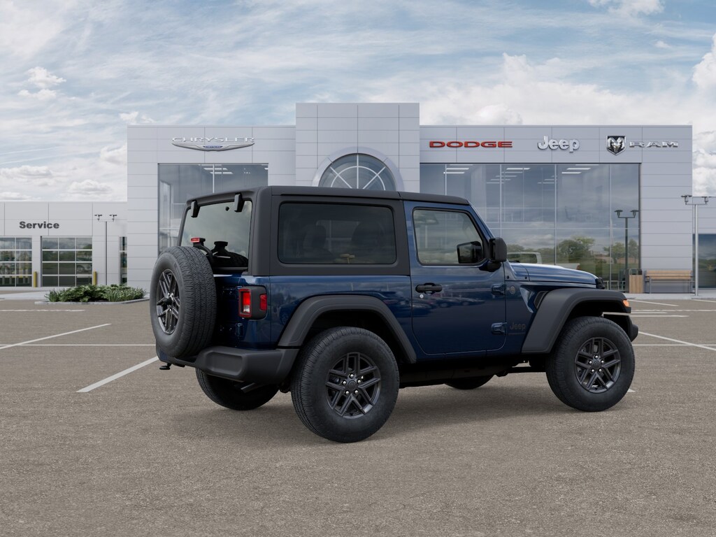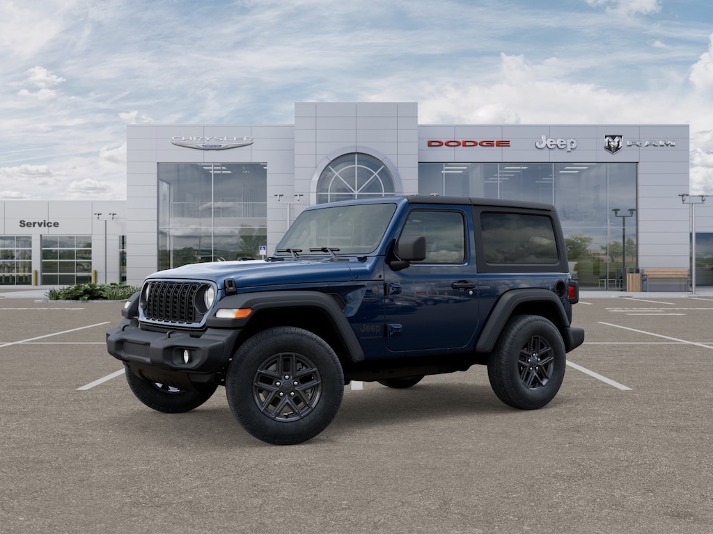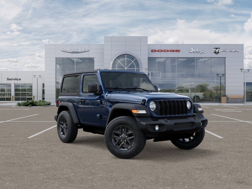 110 MPH Vehicle Max Speed Calibration, 2-Door Passive Entry, Front Door Locks, 3.45 Overall Top Gear Ratio, 4-Wheel Disc Brakes, 8 Speakers, ABS brakes, Advanced Brake Assist, Air Conditioning, Air Conditioning w/Auto Temperature Control, Air Filtering, AM/FM radio: SiriusXM, Apple CarPlay/Android Auto, Automatic Headlamps, Auxiliary Battery, Black 3-Piece Hard Top, Brake assist, Cloth Low-Back Bucket Seats, Cluster 7.0" TFT Color Display, Compass, Convenience Group, Corning Gorilla Glass, Deep Tint Sunscreen Windows, Delay-off headlights, Driver door bin, Driver vanity mirror, Dual front impact airbags, Dual front side impact airbags, Electronic Stability Control, Emergency/Assistance Call, Enhanced Adaptive Cruise Control, Freedom Panel Storage Bag, Front anti-roll bar, Front Bucket Seats, Front Center Armrest w/Storage, Front fog lights, Front reading lights, Full Speed FWD Collison Warn Plus, Heated Front Seats, Heated Steering Wheel, Illuminated entry, Integrated roll-over protection, Low tire pressure warning, MOPAR All-Weather Floor Mats, Non-Locking Fuel Cap w/o Discriminator, Normal Duty Suspension, Occupant sensing airbag, Outside temperature display, Overhead airbag, Panic alarm, ParkView Rear Back-Up Camera, Passenger door bin, Passenger vanity mirror, Power Heated Mirrors, Power steering, Power windows, Premium Wrapped Steering Wheel, Quick Order Package 22S Sport S, Radio data system, Radio: Uconnect 5 w/12.3" Display, Rear anti-roll bar, Rear reading lights, Rear Window Defroster, Rear Window Wiper/Washer, Remote keyless entry, Remote Start System, Security Alarm, Speed control, Steering wheel mounted audio controls, Stop-Start Dual Battery System, Sun Visors w/Illuminated Vanity Mirrors, Tachometer, Telescoping steering wheel, Tilt steering wheel, Traction control, Trip computer, Universal Garage Door Opener, Variably intermittent wipers, Wheels: 17" x 7.5" Black Steel Styled, Wheels: 17" x 7.5" Gray. Fathom Blue Pearlcoat 2025 Jeep Wrangler Sport S 4WD 8-Speed Automatic 2.0L I4 DOHC