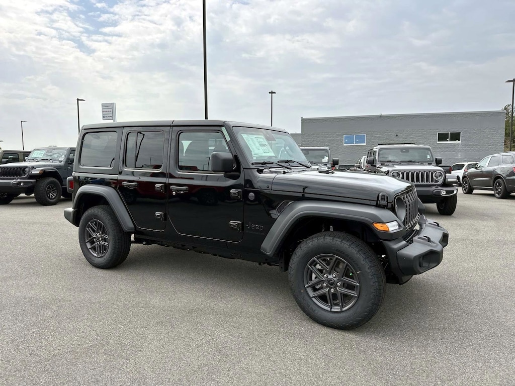 110 MPH Vehicle Max Speed Calibration, 2-Door Passive Entry, Front Door Locks, 3.45 Overall Top Gear Ratio, 4-Wheel Disc Brakes, 8 Speakers, ABS brakes, Advanced Brake Assist, Air Conditioning, Air Conditioning w/Auto Temperature Control, Air Filtering, AM/FM radio: SiriusXM, Apple CarPlay/Android Auto, Automatic Headlamps, Aux Battery, Black 3-Piece Hard Top, Brake assist, Cloth Low-Back Bucket Seats, Cluster 7.0" TFT Color Display, Compass, Convenience Group, Corning Gorilla Glass, Deep Tint Sunscreen Windows, Delay-off headlights, Driver door bin, Driver vanity mirror, Dual front impact airbags, Dual front side impact airbags, Electronic Stability Control, Emergency/Assistance Call, Enhanced Adaptive Cruise Control, Freedom Panel Storage Bag, Front anti-roll bar, Front Bucket Seats, Front Center Armrest w/Storage, Front fog lights, Front reading lights, Full Speed Forward Collision Warning Plus, Heated Front Seats, Heated Steering Wheel, Illuminated entry, Integrated roll-over protection, Jeep Trail Rated Kit, Low tire pressure warning, Non-Lock Fuel Cap w/o Discriminator, Normal Duty Suspension, Occupant sensing airbag, Outside temperature display, Overhead airbag, Panic alarm, ParkView Rear Back-Up Camera, Passenger door bin, Passenger vanity mirror, Power Heated Mirrors, Power steering, Power windows, Premium Wrapped Steering Wheel, Quick Order Package 24S Sport S, Radio data system, Radio: Uconnect 5 w/12.3" Display, Rear anti-roll bar, Rear reading lights, Rear Window Defroster, Rear Window Wiper/Washer, Remote keyless entry, Remote Start System, Security Alarm, Speed control, Split folding rear seat, Steering wheel mounted audio controls, Stop-Start Dual Battery System, Sun Visors w/Illuminated Vanity Mirrors, Tachometer, Telescoping steering wheel, Tilt steering wheel, Traction control, Trip computer, Universal Garage Door Opener, Variably intermittent wipers, Wheels: 17" x 7.5" Black Steel Styled, Wheels: 17" x 7.5" Gray. 2025 Jeep Wrangler Sport S Sport S Black Clearcoat 4WD 8-Speed Automatic 3.6L V6 24V VVT