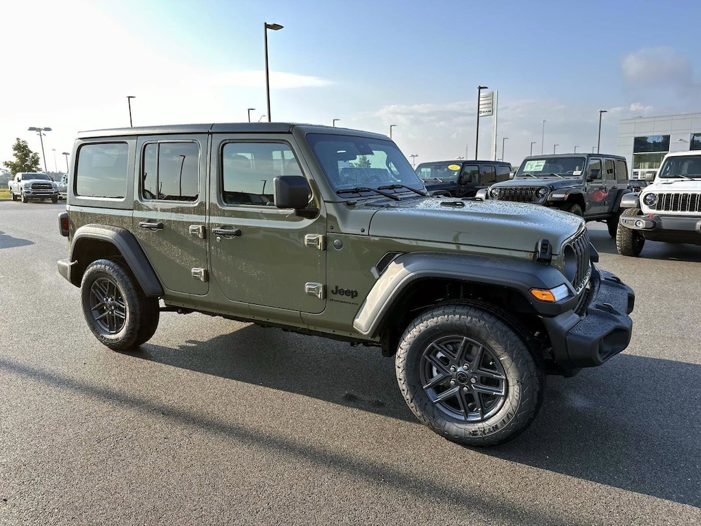 110 MPH Vehicle Max Speed Calibration, 2-Door Passive Entry, Front Door Locks, 3.45 Overall Top Gear Ratio, 4-Wheel Disc Brakes, 8 Speakers, ABS brakes, Advanced Brake Assist, Air Conditioning, Air Conditioning w/Auto Temperature Control, Air Filtering, AM/FM radio: SiriusXM, Apple CarPlay/Android Auto, Automatic Headlamps, Aux Battery, Black 3-Piece Hard Top, Brake assist, Cloth Low-Back Bucket Seats, Cluster 7.0" TFT Color Display, Compass, Convenience Group, Corning Gorilla Glass, Deep Tint Sunscreen Windows, Delay-off headlights, Driver door bin, Driver vanity mirror, Dual front impact airbags, Dual front side impact airbags, Electronic Stability Control, Emergency/Assistance Call, Enhanced Adaptive Cruise Control, Freedom Panel Storage Bag, Front anti-roll bar, Front Bucket Seats, Front Center Armrest w/Storage, Front fog lights, Front reading lights, Full Speed Forward Collision Warning Plus, Heated Front Seats, Heated Steering Wheel, Illuminated entry, Integrated roll-over protection, Jeep Trail Rated Kit, Low tire pressure warning, Non-Lock Fuel Cap w/o Discriminator, Normal Duty Suspension, Occupant sensing airbag, Outside temperature display, Overhead airbag, Panic alarm, ParkView Rear Back-Up Camera, Passenger door bin, Passenger vanity mirror, Power Heated Mirrors, Power steering, Power windows, Premium Wrapped Steering Wheel, Quick Order Package 24S Sport S, Radio data system, Radio: Uconnect 5 w/12.3" Display, Rear anti-roll bar, Rear reading lights, Rear Window Defroster, Rear Window Wiper/Washer, Remote keyless entry, Remote Start System, Security Alarm, Speed control, Split folding rear seat, Steering wheel mounted audio controls, Stop-Start Dual Battery System, Sun Visors w/Illuminated Vanity Mirrors, Tachometer, Telescoping steering wheel, Tilt steering wheel, Traction control, Trip computer, Universal Garage Door Opener, Variably intermittent wipers, Wheels: 17" x 7.5" Black Steel Styled, Wheels: 17" x 7.5" Gray. 2025 Jeep Wrangler Sport S Sport S 41 4WD 8-Speed Automatic 3.6L V6 24V VVT