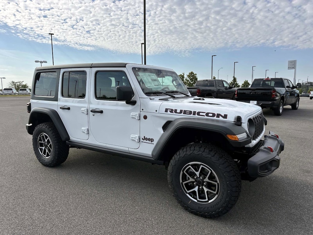 12.3" Touchscreen Display, 4-Wheel Disc Brakes, 4.10 Rear Axle Ratio, 4G LTE Wi-Fi Hot Spot, 8 Speakers, 97 MPH Vehicle Max Speed Calibration, ABS brakes, Air Conditioning, Alloy wheels, Alpine Premium Audio System, AM/FM radio: SiriusXM, Apple CarPlay, Apple CarPlay/Android Auto, Auto-Dimming Rear-View Mirror, Automatic temperature control, Aux Battery, Auxiliary Switches, Black 3-Piece Hard Top, Brake assist, Class II Receiver Hitch, Cloth Low-Back Bucket Seats, Compass, Connected Travel & Traffic Services, Connectivity - US/Canada, Convenience Group, Delay-off headlights, Driver door bin, Driver vanity mirror, Dual front impact airbags, Dual front side impact airbags, Electronic Stability Control, Emergency communication system: Jeep Connect, Freedom Panel Storage Bag, Front anti-roll bar, Front Bucket Seats, Front Center Armrest w/Storage, Front dual zone A/C, Front fog lights, Front reading lights, Fully automatic headlights, Google Android Auto, GPS Navigation, HD Radio, Heated door mirrors, Heated Front Seats, Heated Steering Wheel, Illuminated entry, Integrated Off-Road Camera, Integrated roll-over protection, Integrated Voice Command w/Bluetooth, Jeep Trail Rated Kit, Low tire pressure warning, MOPAR All-Weather Floor Mats, Non-Lock Fuel Cap w/o Discriminator, Occupant sensing airbag, Outside temperature display, Overhead airbag, Panic alarm, ParkView Rear Back-Up Camera, Passenger door bin, Passenger vanity mirror, Performance Suspension, Power door mirrors, Power steering, Power windows, Quick Order Package 24R Rubicon, Radio data system, Radio: Uconnect 5 Nav w/12.3" Display, Radio: Uconnect 5 w/12.3" Display, Rear anti-roll bar, Rear reading lights, Rear Window Defroster, Rear Window Wiper/Washer, Remote keyless entry, Security system, SiriusXM Radio Service, SiriusXM w/360L, Speed control, Split folding rear seat, Steering wheel mounted audio controls, Stop-Start Dual Battery System, Tachometer, Technology Group, Telescoping steering wheel, Tilt steering wheel, Traction control, Trip computer, Universal Garage Door Opener, Variably intermittent wipers, Voltmeter, Wheels: 17" x 7.5" Machined/Painted Black. 2025 Jeep Wrangler Rubicon Rubicon Bright White Clearcoat 4WD 8-Speed Automatic 3.6L V6 24V VVT