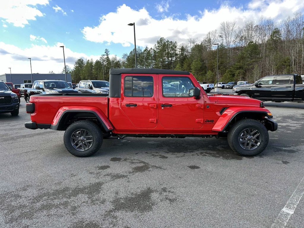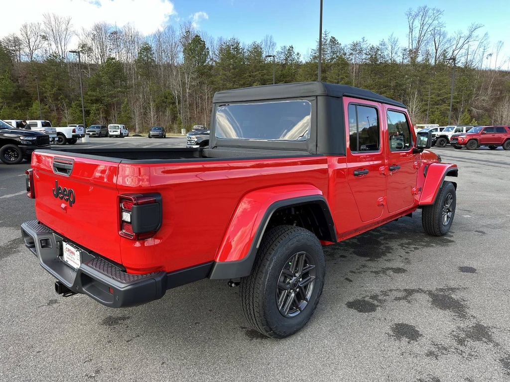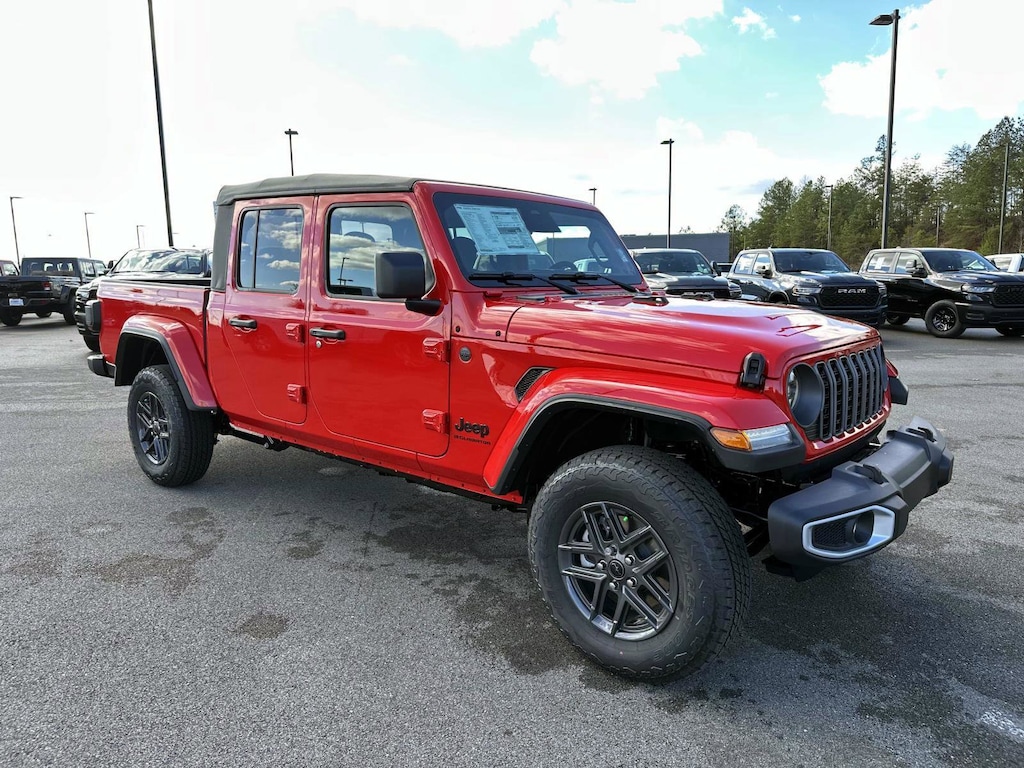 110 Mph Vehicle Max Speed Calibration, 115V Auxiliary Power Outlet, 12.3" Touchscreen Display, 4-Wheel Disc Brakes, 400W Inverter, 4G LTE Wi-Fi Hot Spot, 8 Speakers, ABS brakes, Advanced Brake Assist, Air Conditioning, Air Conditioning with Auto Temp Control, Alexa Built-in, Alpine Premium Audio System, AM/FM radio: SiriusXM with 360L, Anti-Spin Differential Rear Axle, Apple CarPlay, Apple CarPlay/Android Auto, Auto High Beam Headlamp Control, Auto-Dimming Rear-View Mirror, Automatic Headlamps, Black Molded-in-Color Fender Flares (2-Piece), Blind Spot and Cross Path Detection, Brake assist, Class IV Receiver Hitch, Cloth Low-Back Bucket Seats, Cluster 7.0" TFT Color Display, Compass, Connected Travel and Traffic Services, Connectivity - US/Canada, Convenience Group, Conventional Differential Front Axle, Corning Gorilla Glass, Dana M210 Wide Front Axle, Dana M220 Wide Rear Axle, Daytime Running Lamp System, Daytime Running Lamps LED Accents, Deep Tint Sunscreen Windows, Delay-off headlights, Driver door bin, Driver vanity mirror, Dual front impact airbags, Dual front side impact airbags, Electronic Stability Control, Emergency/Assistance Call, Front anti-roll bar, Front Bucket Seats, Front Center Armrest w/Storage, Front Door Locks 2-Door Passive Entry, Front fog lights, Front LED Fog Lamps, Front reading lights, Full Speed Forward Collision Warning Plus, Google Android Auto, GPS Navigation, HD Radio, Heated Front Seats, Heated Steering Wheel, Heavy-Duty Engine Cooling, Illuminated entry, Integrated roll-over protection, Integrated Voice Command with Bluetooth, LED Headlamp and Fog Lamp Group, LED Premium Reflector Headlamps, LED Taillamps, Low tire pressure warning, Max Tow Package with 4.10 Axle Ratio, Media Hub with 2 Charge Only USBs, MOPAR Spray in Bedliner, Normal Duty Plus Suspension, Normal Duty Suspension, Occupant sensing airbag, Outside temperature display, Overhead airbag, Panic alarm, ParkSense Rear Park Assist System, ParkView Rear Back-Up Camera, Passenger door bin, Passenger vanity mirror, Power Heated Mirrors, Power steering, Power windows, Premium Wrapped Steering Wheel, Quick Order Package 24S Sport S, Radio data system, Radio: Uconnect 5 Navigation with 12.3" Display, Radio: Uconnect 5 with 12.3" Display, Rear anti-roll bar, Rear reading lights, Remote keyless entry, Remote Start System, Safety Group, Security Alarm, Speed control, Split folding rear seat, Steering wheel mounted audio controls, Sun Visors with Illuminated Vanity Mirrors, Tachometer, Technology Group, Telescoping steering wheel, Tilt steering wheel, Traction control, Trip computer, Universal Garage Door Opener, USB Host Flip, Variably intermittent wipers, Voltmeter, Wheels: 17" x 7.5" Black Steel Styled, Wheels: 17" x 7.5" Gray. 2026 Jeep Gladiator Sport S Sport S irecracker Red Clearcoat 4WD 8-Speed Automatic 3.6L V6 24V VVT