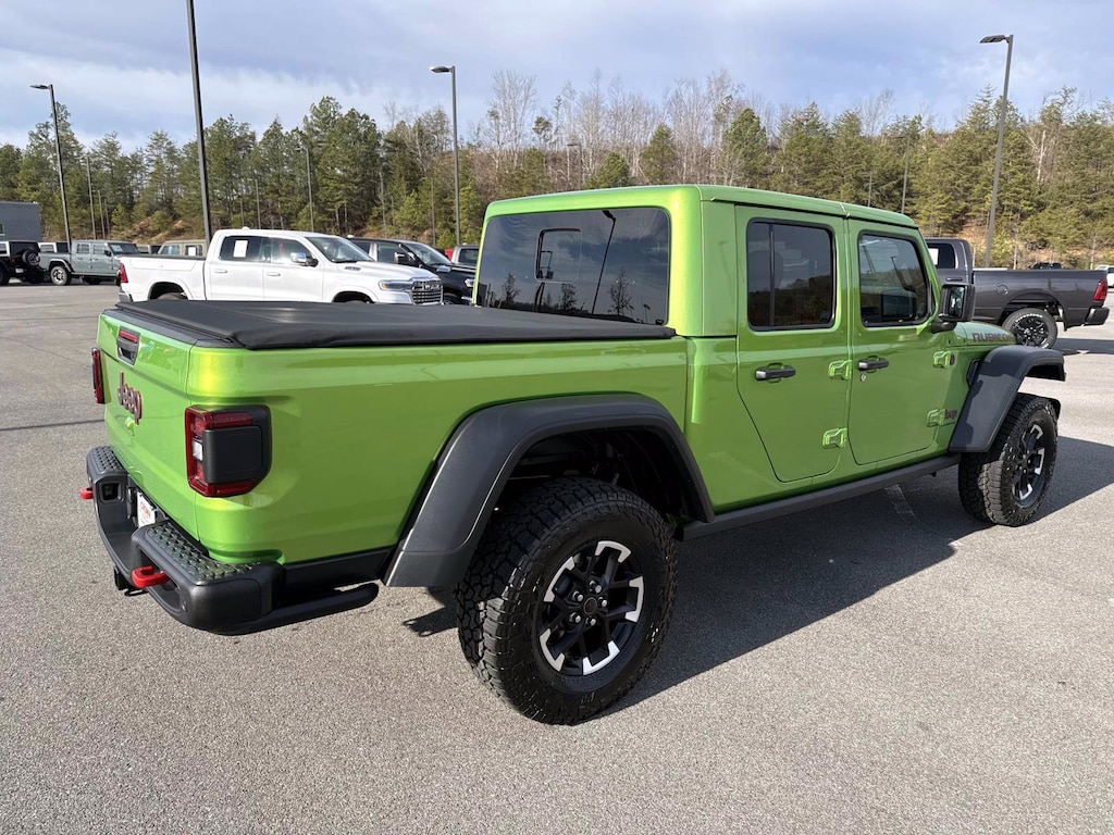110 Mph Vehicle Max Speed Calibration, 12.3" Touchscreen Display, 4-Wheel Disc Brakes, 4.10 Rear Axle Ratio, 4G LTE Wi-Fi Hot Spot, 8 Speakers, ABS brakes, Air Conditioning, Alexa Built-in, Alloy wheels, Alpine Premium Audio System, AM/FM radio: SiriusXM with 360L, Apple CarPlay, Apple CarPlay/Android Auto, Auto High Beam Headlamp Control, Auto-Dimming Rear-View Mirror, Automatic temperature control, Blind Spot and Cross Path Detection, Body Color 3-Piece Hard Top, Brake assist, Cloth Low-Back Bucket Seats, Compass, Connected Travel and Traffic Services, Connectivity - US/Canada, Convenience Group, Delay-off headlights, Driver door bin, Driver vanity mirror, Dual front impact airbags, Dual front side impact airbags, Electronic Stability Control, Emergency communication system: Jeep Connect, Freedom Panel Storage Bag, Front anti-roll bar, Front Bucket Seats, Front Center Armrest w/Storage, Front dual zone A/C, Front fog lights, Front reading lights, Fully automatic headlights, Google Android Auto, GPS Navigation, HD Radio, Heated door mirrors, Heated Front Seats, Heated Steering Wheel, Illuminated entry, Integrated Off-Road Camera, Integrated roll-over protection, Integrated Voice Command with Bluetooth, Low tire pressure warning, MOPAR Spray in Bedliner, Occupant sensing airbag, Outside temperature display, Overhead airbag, Panic alarm, ParkSense Rear Park Assist System, Passenger door bin, Passenger vanity mirror, Performance Suspension, Power Dome Dual Vented Hood, Power door mirrors, Power steering, Power windows, Quick Order Package 24R Rubicon, Radio data system, Radio: Uconnect 5 Navigation with 12.3" Display, Radio: Uconnect 5 with 12.3" Display, Rear anti-roll bar, Rear reading lights, Rear Sliding Window, Rear Window Defroster, Remote keyless entry, Remote Start System, Roll-Up Tonneau Cover, Safety Group, Security system, Speed control, Split folding rear seat, Steel Power Dome Hood Package, Steering wheel mounted audio controls, Tachometer, Technology Group, Telescoping steering wheel, Tilt steering wheel, Traction control, Trip computer, Universal Garage Door Opener, USB Host Flip, Variably intermittent wipers, Voltmeter, Wheels: 17" x 7.5" Machined with Black Pockets, Wheels: 17" x 7.5" Machined/Painted Black. 2026 Jeep Gladiator Rubicon Rubicon Mojito 4WD 8-Speed Automatic 3.6L V6 24V VVT