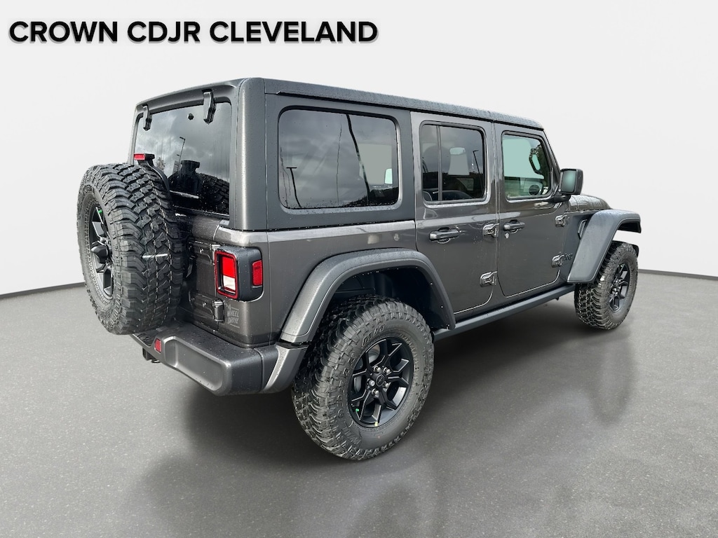 12.3" Touchscreen Display, 2-Door Passive Entry, Front Door Locks, 4-Wheel Disc Brakes, 4-Wheel Drive Swing Gate Decal, 4G LTE Wi-Fi Hot Spot, 7 and 4 Pin Wiring Harness, 8 Speakers, ABS brakes, Advanced Brake Assist, Air Conditioning, Air Conditioning with Auto Temp Control, Air Filtering, AM/FM radio: SiriusXM with 360L, Apple CarPlay, Apple CarPlay/Android Auto, Automatic Headlamps, Aux Battery, Auxiliary Switches, Black 3-Piece Hard Top, Black Grille with Gloss Black Rings, Brake assist, Class II Receiver Hitch, Cluster 7.0" TFT Color Display, Compass, Connectivity - US/Canada, Convenience Group, Conventional Differential Front Axle, Corning Gorilla Glass, Dana M210 Wide HD Tube Front Axle, Dana M220 Wide Rear Axle, Daytime Running Lamps LED Accents, Deep Tint Sunscreen Windows, Delay-off headlights, Driver door bin, Driver vanity mirror, Dual front impact airbags, Dual front side impact airbags, E-Locker Rear Axle, Electronic Stability Control, Emergency/Assistance Call, Enhanced Adaptive Cruise Control, For More Info, Call 800-643-2112, Freedom Panel Storage Bag, Front anti-roll bar, Front Bucket Seats, Front Center Armrest w/Storage, Front fog lights, Front LED Fog Lamps, Front reading lights, Full Speed Forward Collision Warning Plus, Google Android Auto, Heated Front Seats, Heated Steering Wheel, Illuminated entry, Injection Molded Black Rear Bumper, Integrated Center Stack Radio, Integrated roll-over protection, Jeep Trail Rated Kit, LED Premium Reflector Headlamps, Low tire pressure warning, Mold in Color Bumper with Gloss Black, Molded in Color Rubicon Highline Flare, MOPAR All-Weather Floor Mats, No Soft Top, Non-Lock Fuel Cap Without Discriminator, Normal Duty Suspension, Occupant sensing airbag, Off-Road Plus Mode, Outside temperature display, Overhead airbag, Panic alarm, ParkView Rear Back-Up Camera, Passenger door bin, Passenger vanity mirror, Power Dome Dual Vented Hood, Power Heated Mirrors, Power steering, Power windows, Premium Wrapped Steering Wheel, Quick Order Package 24W Willys, Radio data system, Radio: Uconnect 5 with 12.3" Display, Rear anti-roll bar, Rear reading lights, Rear Window Defroster, Rear Window Wiper/Washer, Remote keyless entry, Security Alarm, SiriusXM Radio Service, SiriusXM with 360L, Speed control, Split folding rear seat, Steel Power Dome Hood Package, Steering wheel mounted audio controls, Stop-Start Dual Battery System, Sun Visors with Illuminated Vanity Mirrors, Tachometer, Telescoping steering wheel, Tilt steering wheel, Traction control, Trailer Tow and Auxiliary Switch Group, Trip computer, Universal Garage Door Opener, Variably intermittent wipers, Wheels: 17" x 7.5" Black Steel Styled, Wheels: 17" x 7.5" Painted Black, Willy's Suspension, Willys Hood Decal. 2026 Jeep Wrangler Willys Willys Granite Crystal Metallic Clearcoat 4WD 8-Speed Automatic 3.6L V6 24V VVTBACK-UP CAMERA, 4X4, HEATED FRONT SEATS, HEATED STEERING WHEEL, BLUETOOTH®, MP3 Player, KEYLESS ENTRY, SAT RADIO, ALLOY WHEELS.