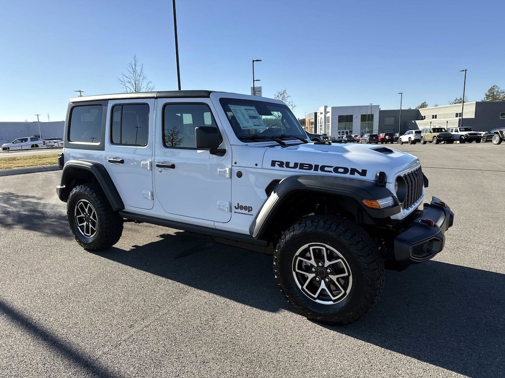 12.3" Touchscreen Display, 4-Wheel Disc Brakes, 4.10 Rear Axle Ratio, 4G LTE Wi-Fi Hot Spot, 8 Speakers, ABS brakes, Air Conditioning, Alloy wheels, Alpine Premium Audio System, AM/FM radio: SiriusXM with 360L, Apple CarPlay, Apple CarPlay/Android Auto, Auto High Beam Headlamp Control, Auto-Dimming Rear-View Mirror, Automatic temperature control, Aux Battery, Auxiliary Switches, Black 3-Piece Hard Top, Blind Spot and Cross Path Detection, Brake assist, Class II Receiver Hitch, Cloth Low-Back Bucket Seats, Compass, Connected Travel and Traffic Services, Connectivity - US/Canada, Convenience Group, Delay-off headlights, Driver door bin, Driver vanity mirror, Dual front impact airbags, Dual front side impact airbags, Electronic Stability Control, Emergency communication system: Jeep Connect, For More Info, Call 800-643-2112, Freedom Panel Storage Bag, Front anti-roll bar, Front Bucket Seats, Front Center Armrest w/Storage, Front dual zone A/C, Front fog lights, Front reading lights, Fully automatic headlights, Google Android Auto, GPS Navigation, HD Radio, Heated door mirrors, Heated Front Seats, Heated Steering Wheel, Illuminated entry, Integrated Center Stack Radio, Integrated Off-Road Camera, Integrated roll-over protection, Integrated Voice Command with Bluetooth, Jeep Trail Rated Kit, Low tire pressure warning, MOPAR All-Weather Floor Mats, No Soft Top, Non-Lock Fuel Cap Without Discriminator, Occupant sensing airbag, Outside temperature display, Overhead airbag, Panic alarm, ParkSense Rear Park Assist System, ParkView Rear Back-Up Camera, Passenger door bin, Passenger vanity mirror, Performance Hood, Performance Suspension, Power door mirrors, Power steering, Power windows, Quick Order Package 24R Rubicon, Radio data system, Radio: Uconnect 5 Navigation with 12.3" Display, Radio: Uconnect 5 with 12.3" Display, Rear anti-roll bar, Rear reading lights, Rear Window Defroster, Rear Window Wiper/Washer, Remote keyless entry, Safety Group, Security system, SiriusXM Radio Service, SiriusXM with 360L, Speed control, Split folding rear seat, Steel Performance Hood Package, Steering wheel mounted audio controls, Stop-Start Dual Battery System, Tachometer, Technology Group, Telescoping steering wheel, Tilt steering wheel, Traction control, Trip computer, Universal Garage Door Opener, Variably intermittent wipers, Voltmeter, Wheels: 17" x 7.5" Machined/Painted Black. 2026 Jeep Wrangler Rubicon Rubicon Bright White Clearcoat 4WD 8-Speed Automatic 3.6L V6 24V VVT