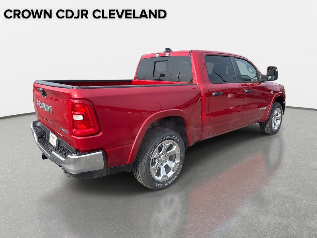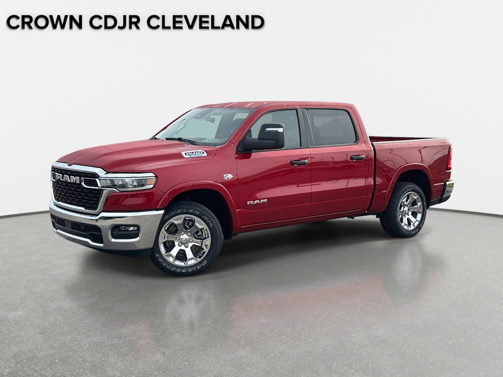 115V Auxiliary Power Outlet, 115V Auxiliary Rear Power Outlet, 12" Touchscreen Display, 2nd Row in Floor Storage Bins, 3 Rear Seat Head Restraints, 4 Way Front Headrests, 4-Wheel Disc Brakes, 400W Inverter, 48V Belt Starter Generator, 4G LTE Wi-Fi Hot Spot, 6 Speakers, 9 Amplified Speakers with Subwoofer, ABS brakes, Accent Color Tailgate Handle, Air Conditioning, Air Conditioning ATC with Dual Zone Control, Alloy wheels, AM/FM radio, Apple CarPlay, Apple CarPlay/Android Auto, Auto High-beam Headlights, Auto Power-Folding Mirrors, Auto-Dimming Exterior Driver Mirror, Auto-Dimming Rear-View Mirror, Big Horn Level 2 Equipment Group, Black Exterior Mirrors, Black Premium Power Mirrors, Black Trailer Tow Power Mirrors, Body Color Fender Flares, Brake assist, Bucket Seats, Bumpers: chrome, Center Console Parts Module, Cloth Bucket Seats, Cluster 7.0" TFT Color Display, Compass, Configurable Drive Mode, Connected Travel and Traffic Services, Connectivity - US/Canada, Convex Wide-Angle Exterior Mirror Insert, Delay-off headlights, Deluxe Cloth Bucket Seats, Disassociated Touchscreen Display, Driver door bin, Dual front impact airbags, Dual front side impact airbags, Electronic Stability Control, Exterior Mirrors Courtesy Lamps, Exterior Mirrors with Heating Element, Exterior Mirrors with Supplemental Signals, Front anti-roll bar, Front Bucket Seats, Front Center Armrest w/Storage, Front fog lights, Front reading lights, Front Seat Back Map Pockets, Front wheel independent suspension, Full Length Floor Console, Fully automatic headlights, Global Telematics Box Module, Glove Box Lamp, Google Android Auto, GPS Antenna Input, GPS Navigation, HD Radio, Heated door mirrors, Heated Front Seats, Heated Steering Wheel, Illuminated entry, Integrated Center Stack Radio, Integrated Voice Command with Bluetooth, Leather Wrapped Steering Wheel, LED Dome Lamp with on/Off Switch, LED Footwell Lighting, Low tire pressure warning, Manual Adjust 4-Way Driver Seat, Manual Adjust 4-Way Front Passenger Seat, Manual Folding Exterior Mirrors, Manuarl Telescoping Mirrors, Media Hub with 2 Charge Only USBs, Mirror Clearance/Running Lights, MOPAR Front and Rear Rubber Floor Mats, Occupant sensing airbag, Outside temperature display, Overhead airbag, Overhead console, Overhead LED Lamps, Panic alarm, ParkView Rear Back-Up Camera, Passenger door bin, Passenger vanity mirror, Power 2-Way Driver Lumbar Adjust, Power Adjust 8-Way Driver Seat, Power Adjustable Pedals, Power door mirrors, Power steering, Power windows, Power-Adjustable Convex Aux Mirrors, Premium Overhead Console, Quick Order Package 27Z Big Horn, Radio data system, Radio: Uconnect 5 Navigation with 12.0" Display, Radio: Uconnect 5 W with 8.4" Display, RAM Grille Badge - Chrome, Rear 60/40 Folding Seat, Rear anti-roll bar, Rear Center Armrest, Rear Power Sliding Window, Rear step bumper, Rear Window Defroster, Remote keyless entry, Remote Tailgate Release, Security Alarm, SiriusXM Radio Service, SiriusXM with 360L, Speed control, Steering Wheel Mounted Audio Controls, Sun Visors with Illuminated Vanity Mirrors, Supplier Part Tracking (J-1), Tachometer, Telescoping steering wheel, Tilt steering wheel, Towing Technology Group, Traction control, Trailer Brake Control, Trailer Hitch Line-Up Assist, Trailer Reverse Steering Control, Trailer Tire Pressure Monitoring System, Trailer Tow Group, Trailer Tow Mirrors, Trip computer, Universal Garage Door Opener, USB Host Flip, Variably intermittent wipers, Voltmeter. 2026 Ram 1500 Big Horn/Lone Star Big Horn/Lone Star Molten Red Pearlcoat 4WD 8-Speed Automatic HEMI 5.7L V8 Multi Displacement VVT eTorque