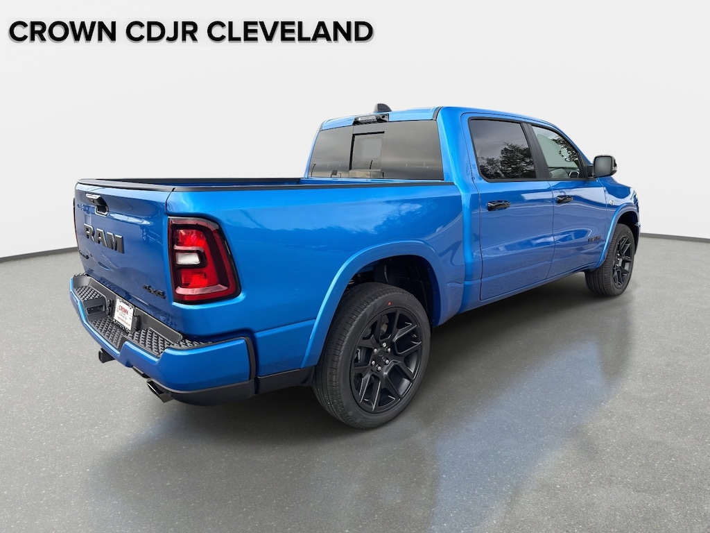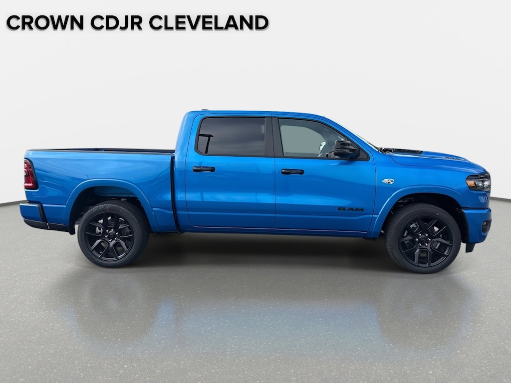 10 Speakers, 12-Way/1-Way Trailer Connector, 14.4" Touchscreen Display, 4-Wheel Disc Brakes, 4G LTE Wi-Fi Hot Spot, ABS brakes, Accent Color Door Handles, Accent Color Premium Power Mirrors, Accent Color Tailgate Handle, Active Driving Assist System, Active Noise Control System, Adjustable pedals, Advanced Safety Group II, Air Conditioning, Alloy wheels, AM/FM radio: SiriusXM with 360L, Anti-Spin Differential Rear Axle, Apple CarPlay/Android Auto, Audio memory, Auto High-beam Headlights, Auto Power-Folding Mirrors, Auto-dimming door mirrors, Auto-Dimming Exterior Driver Mirror, Auto-dimming Rear-View mirror, Automatic temperature control, Black Exterior Truck Badging, Black Headlamp Bezels, Black Interior Accents, Black Painted Exterior Mirrors Caps, Black Tail Lamp Bezels, Body Color Front Bumper, Body Color Rear Bumper with Step Pads, Brake assist, Bumpers: chrome, Chrome Exterior Mirrors, Cluster 12" TFT Color Display, Compass, Connected Travel and Traffic Services, Connectivity - US/Canada, Convex Wide-Angle Exterior Mirror Insert, Delay-off headlights, Driver door bin, Driver vanity mirror, Drowsy Driver Detection, Dual Exhaust with Black Tips, Dual front impact airbags, Dual front side impact airbags, Electronic Stability Control, Evasive Steer Assist, Exterior Mirrors Approach Lamps, Exterior Mirrors Courtesy Lamps, Exterior Mirrors with Heating Element, Exterior Mirrors with Memory, Exterior Mirrors with Supplemental Signals, Front anti-roll bar, Front Bucket Seats, Front Center Armrest w/Storage, Front dual zone A/C, Front fog lights, Front Passenger Interactive Display, Front reading lights, Front wheel independent suspension, Fully automatic headlights, Garage door transmitter, GPS Navigation, Grille Surround 3 Black Texture 2 Black, Harman/Kardon 19 Speaker Premium Sound, Heads-Up Display, Heated door mirrors, Heated front seats, Heated rear seats, Heated steering wheel, Illuminated entry, Integrated Center Stack Radio, Integrated Voice Command with Bluetooth, Intersection Collision Assist System, Laramie Level 2 Equipment Group, Leather steering wheel, Leather Trimmed Bucket Seats, LED CHMSL Lamp, Low tire pressure warning, Memory seat, MOPAR Front and Rear Rubber Floor Mats, Navigation System, Night Edition, Occupant sensing airbag, Off-Road Information Pages, Outside temperature display, Overhead airbag, Overhead console, Panic alarm, ParkView Rear Back-Up Camera, Passenger door bin, Passenger vanity mirror, Pedal memory, Pirelli Brand Tires, Power door mirrors, Power driver seat, Power passenger seat, Power steering, Power Tailgate, Power windows, Proximity Approach/Departure Lamps, Quick Order Package 27H Laramie, Radio data system, Radio: Uconnect 5 Nav with 14.4" Display, Radio: Uconnect 5 Navigation with 12.0" Display, Rain Sensitive Windshield Wipers, RAM Grille Badge - Black, RAM Grille Badge - Chrome, Rear anti-roll bar, Rear reading lights, Rear seat center armrest, Rear step bumper, Remote keyless entry, Security system, SiriusXM Radio Service, SiriusXM with 360L, Speed control, Split folding rear seat, Sport Performance Hood, Steering wheel mounted audio controls, Surround View Camera System, Tachometer, Technology Group, Telescoping steering wheel, Tilt steering wheel, Traction control, Traffic Sign Recognition, Trip computer, Turn signal indicator mirrors, USB Host Flip, Variably intermittent wipers, Ventilated front seats, Voltmeter, Wheels: 20" x 9" Premium Paint/Polish, Wheels: 22" x 9" Forged Aluminum. 2026 Ram 1500 Laramie Laramie Hydro Blue Pearlcoat 4WD 8-Speed Automatic HEMI 5.7L V8 Multi Displacement VVT eTorqueBACK-UP CAMERA, 4X4, LEATHER, HEATED REAR SEATS, HEATED FRONT SEATS, COOLED FRONT SEATS, HEATED STEERING WHEEL, NAVIGATION, LANE DEPARTURE WARNING, BLUETOOTH®, REAR PARKING AID, MP3 Player, BLIND SPOT MONITORING, KEYLESS ENTRY, SAT RADIO, LED HEADLIGHTS, ALLOY WHEELS. <div data-iol-content="PricingMatrixDisclaimer"></div>